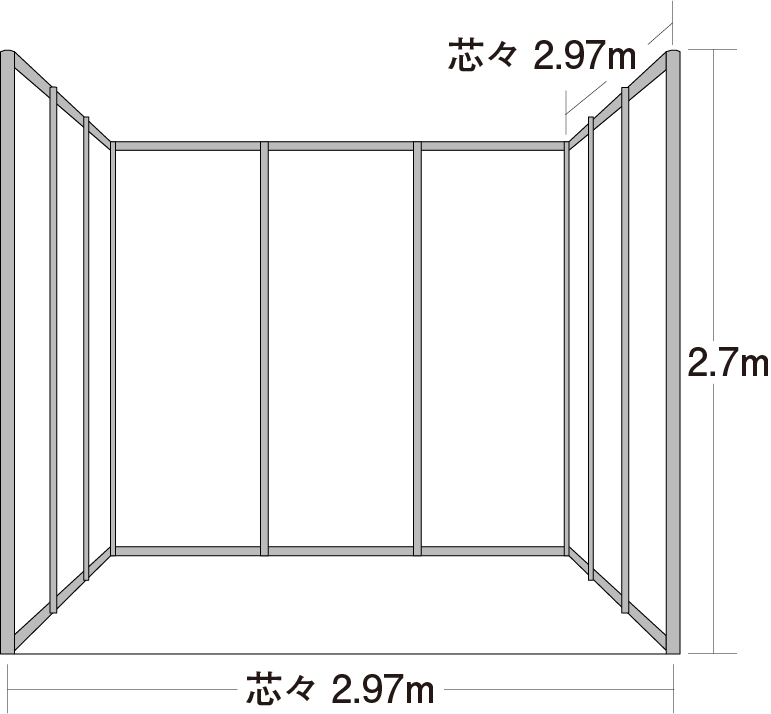 1小間=9m²(間口3m×奥行3m×高さ2.7m)