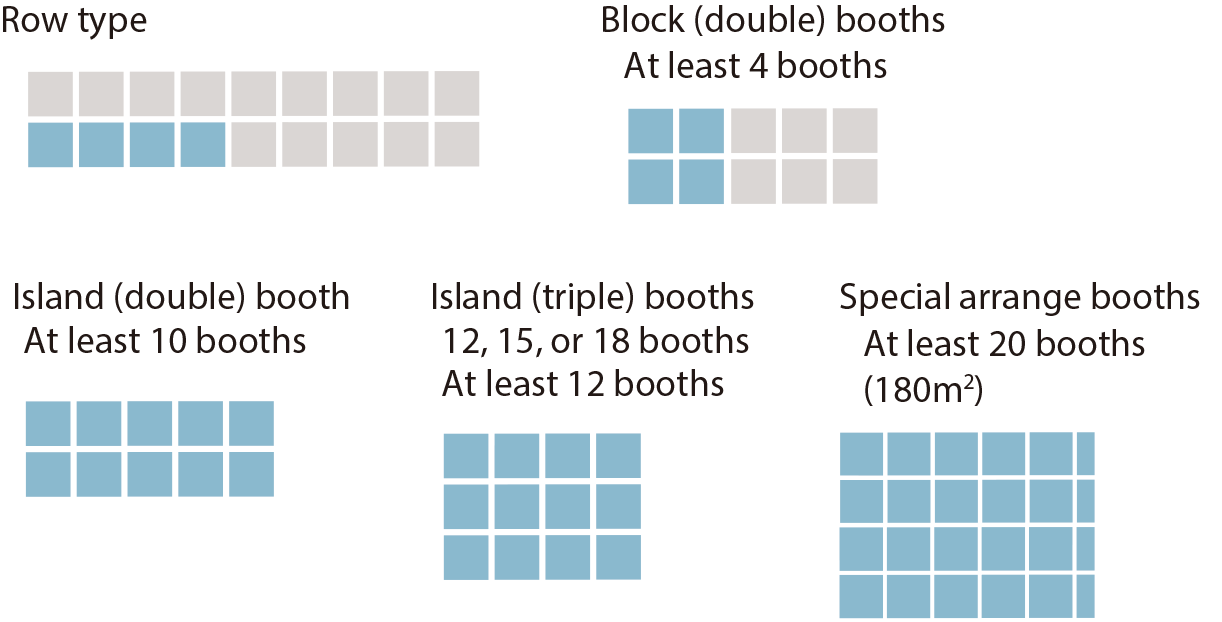 • Maximum height is 5m.(Island booths are open on all four sides. If you would like a row booth, please contact the secretariat.)
